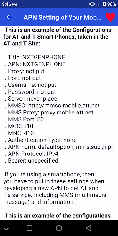 APN Settings Guide is the application that has the list of most of the "APN Settings" across the globe;guideline covering many major mobile operators. Some of the key features of the application include and some tricks.