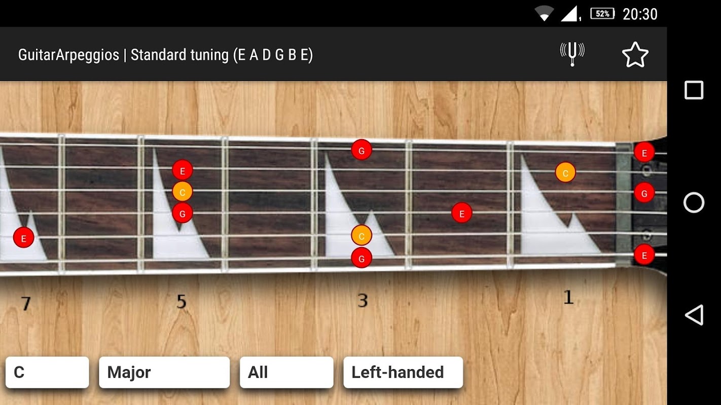 Esta es una aplicación gratuita para aprender arpegios en el cuello de una guitarra. Haz clic en la nota para reproducirla. Tiene arpegios para afinaciones estándar y algunas caídas.