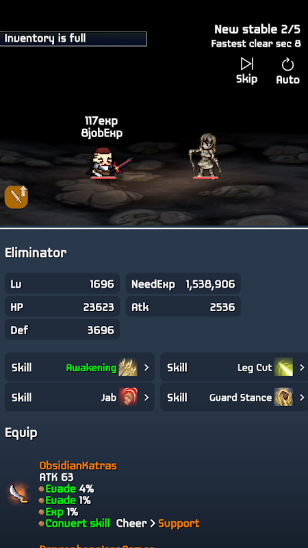 Sistema de Eficiencia de Inactividad: Cuanto más rápido derrotes a los enemigos, más eficiente será tu progreso inactivo.