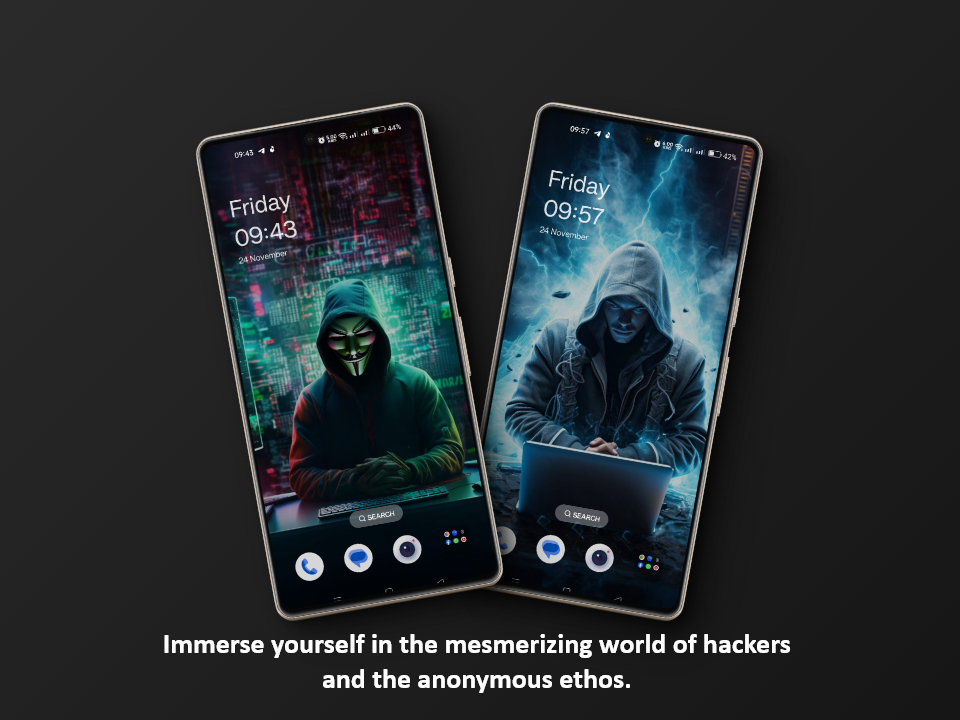Accede a más de 90 fondos de pantalla de piratas informáticos sin conexión en cualquier momento y lugar. No es necesaria una conexión a Internet; tus imágenes favoritas de inspiración cibernética están a solo un toque de distancia.