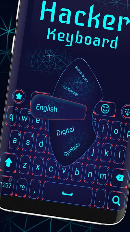 ¿Qué estás esperando? Descarga el teclado libre de hackers y disfruta de la nueva tecnología, neón, tecnología, moderno, azul, holograma, ¡tema gratis gratis!