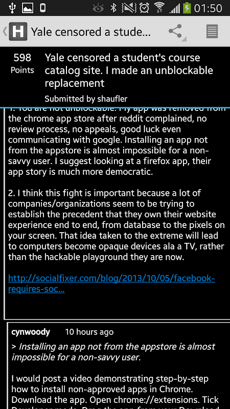 Hacker News Android es una aplicación con todas las funciones de código abierto para Hacker News.
