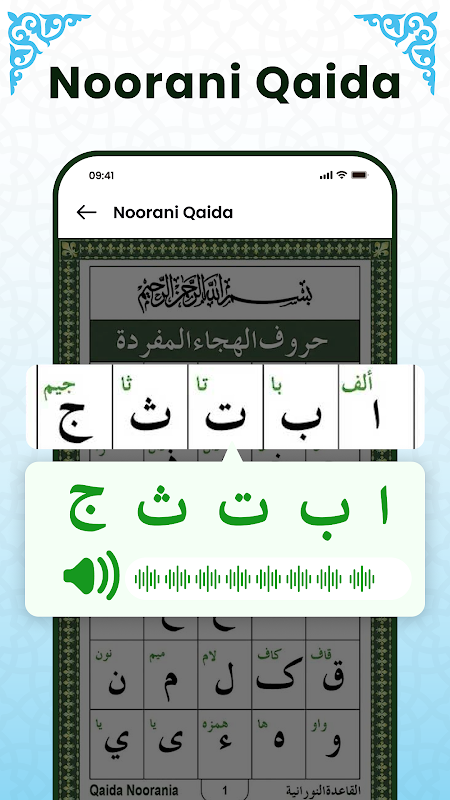 La aplicación Hafizi Quran 15 Lines Per Page ofrece una función especial para que los principiantes aprendan los conceptos básicos del Corán Majeed. La aplicación Noorani Qaida in Hafizi Quran está diseñada para enseñar a los principiantes la pronunciación y recitación correctas de las letras y palabras árabes para leer قرآن الكريم con precisión.