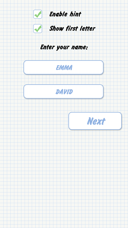 • Hangman es compatible con el modo de juego de uno y dos jugadores