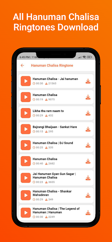 Use this amazing Hanuman Ringtone (बजरंगबली की रिंगटोन) app. All these ringtones are free once you download this application to access all your favourite ringtones. This app have Best collection of high definition Hindu God Shri Hanuman ringtones.