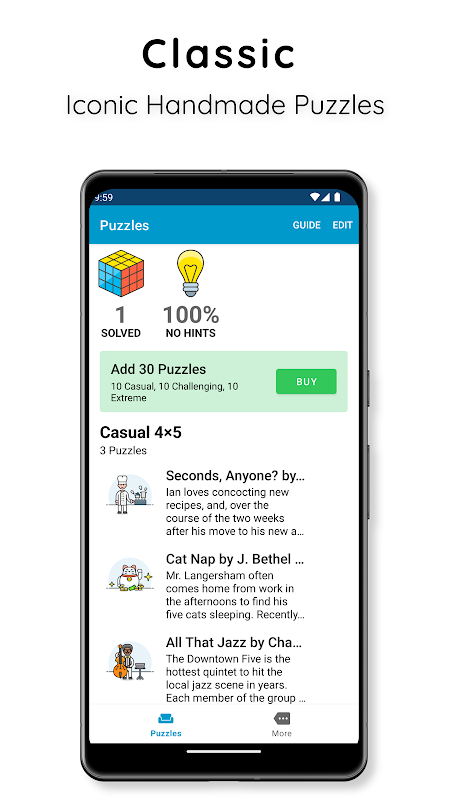 Revista Penny Dell: Rompecabezas de lógica para los verdaderos fanáticos de los problemas de lógica. Pruébalo antes de comprarlo: los primeros diez rompecabezas vienen gratis con todas las funciones activadas y sin anuncios, mensajes molestos ni spyware. Si te gusta, hay trece volúmenes más disponibles, cada uno con treinta rompecabezas únicos, para disfrutar de horas de diversión.