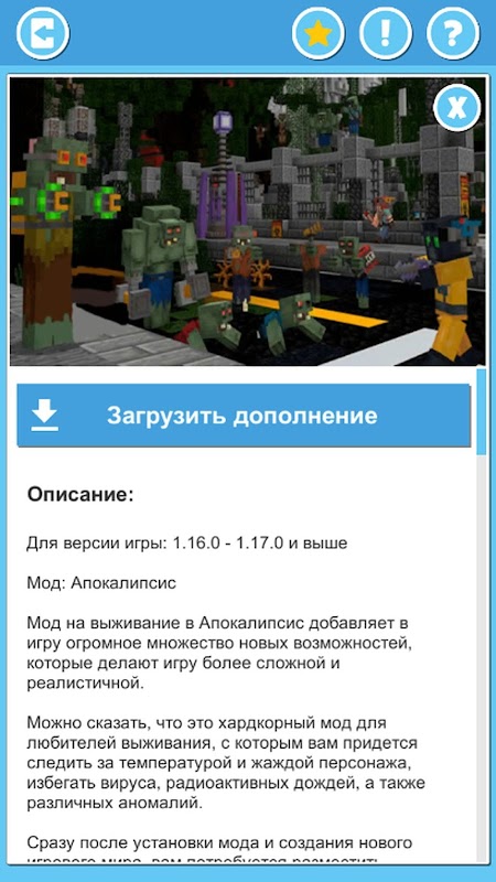 Esta es una aplicación no oficial para modificaciones y complementos. Esta aplicación no está afiliada de ninguna manera con los desarrolladores del juego original para el que están destinados.