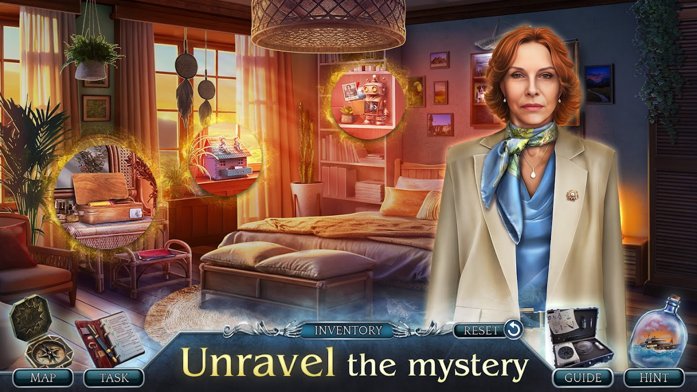 ¿Conseguirás descubrir el misterio de A Haunting Novel 2: Surfaced Secrets? Adéntrate en un emocionante juego de fantasmas lleno de suspense y giros inesperados. Sumérgete en el juego detectivesco de objetos ocultos, resuelve acertijos y puzles, explora lugares inusuales y encuentra todos los objetos ocultos que revelan los secretos que esconde el lujoso yate.