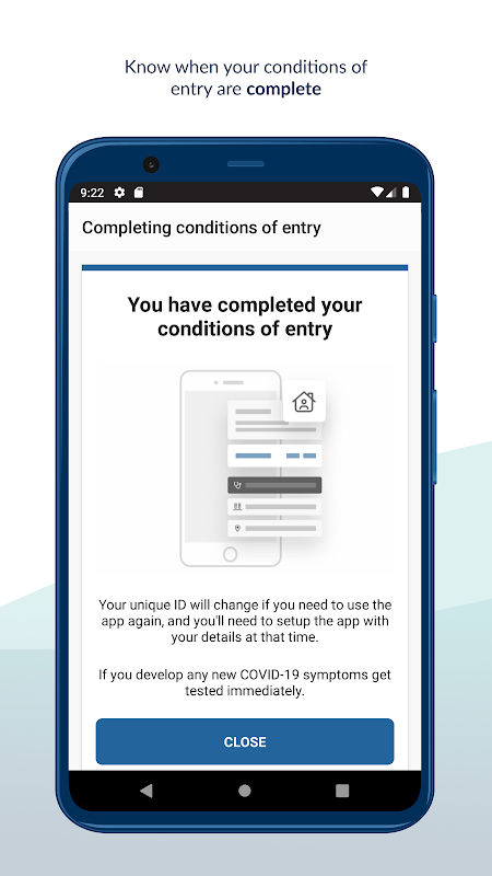 La aplicación proporciona el apoyo y los recursos para permitir a los ciudadanos elegibles monitorear sus síntomas de COVID-19, así como administrar los requisitos de cuarentena en el hogar.
