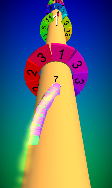 玩家滑动屏幕滚动贪吃蛇,将柱子上的螺旋砖块打破就可以获得相应的分数。