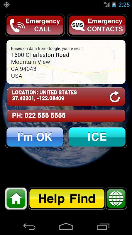 You can get HELP faster with the accuracy of your phone's GPS. If you're out walking in a park, in the hills, at the beach, travelling abroad and have or witness an accident, a fire, a medical emergency or just need to alert someone of your whereabouts - this app provides your GPS position, your current address, and view your position on a map automatically.