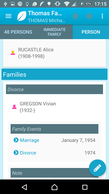 Heredis vous propose des fonctions essentielles pour emporter partout sa généalogie sur Android : l'envoi de son ficher Heredis, la visualisation, la navigation, l'ajout d'individus, l'édition des dictionnaires lieux et sources, affichage des cartes, ajout de photos depuis l'appareil photo...