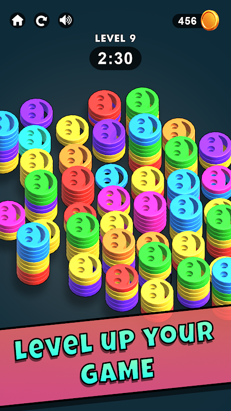 📥 Descarga Hexa Stack ahora y disfruta de una satisfactoria experiencia de rompecabezas de clasificación de colores que potencia la concentración y la lógica.
