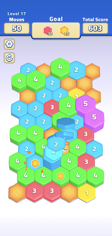 Sumérgete en un relajante mundo de rompecabezas de clasificación donde las coloridas fichas hexagonales se unen a la estrategia y la creatividad. Apila, organiza y combina fichas en una fluida experiencia 3D diseñada para calmar tu mente y agudizar tu concentración. Cada nivel presenta un nuevo desafío con una gratificante mecánica de combinación de colores y combinación de fichas.