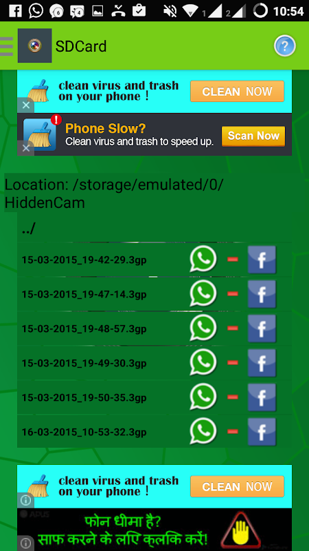 from where you can set front or back cam for recording. you can set or default folder where recorded video will be saved.