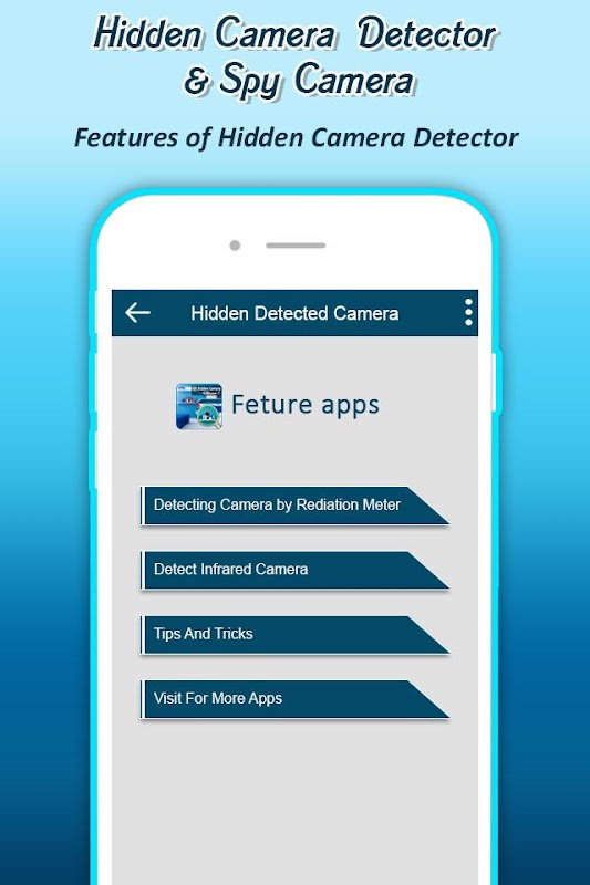 Protect your privacy from spy hidden camera lenses. This app is a tool to help you detect disguised camera lens that you suspect are present in a room. Equivalent to camera detector mobiles, it tries to detect using the magnetic sensor of your android device If magnetic activity seems similar to that of camera, this app will beep and raise alarm for you so that you can further investigate.