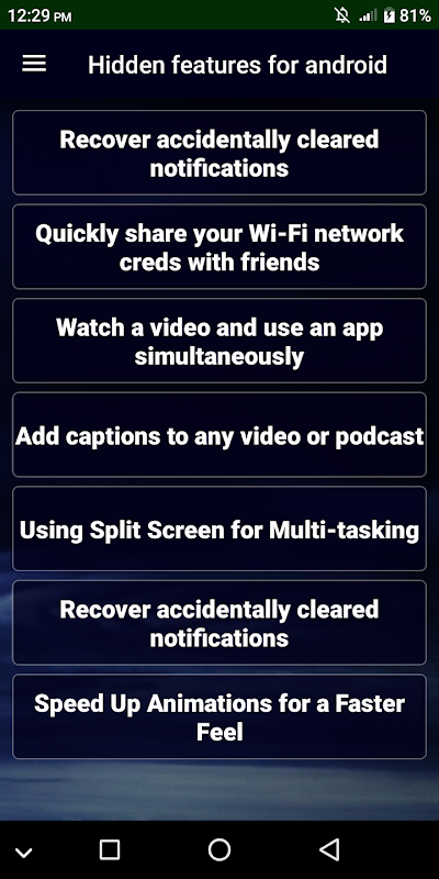 Hidden features for android guide