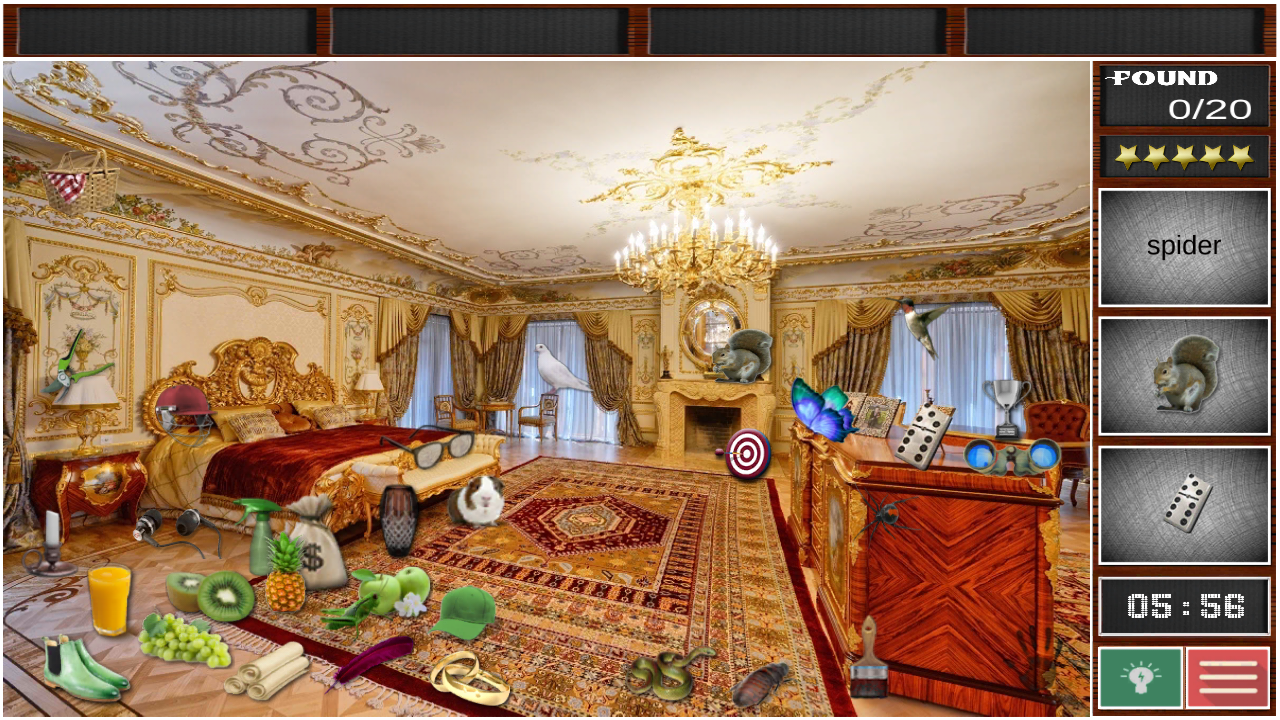 Uno de los juegos de objetos ocultos mejores nuevos gratuita. si realmente gustan los juegos de misterio nuestra aplicación gratuita es un verdadero regalo para usted. Esta es una excelente buscar y encontrar objetos ocultos para los niños que pueden ser utilizados como un juego educativo y de aprendizaje para niños de todas las edades. Y al mismo tiempo su aspecto refuerzo de la memoria puede servir como uno de los mejores juegos de memoria para adultos en la tienda de juego; usted tiene que recordar y buscar objetos ocultos en cada nivel que mejora en gran medida sus habilidades de memoria y concentartion. Descubre los objetos escondidos en cada nivel y ganar tantas estrellas como sea posible para escapar al siguiente nivel, pero ten en cuenta que el tiempo es corto y tienes que terminar la tarea antes de que el temporizador ha expirado.