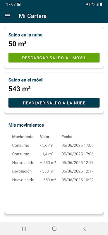 Consultar el saldo de agua prepago disponible en tu contador o hidrante asignado.