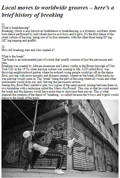 Bloqueo: aprenda movimientos de bloqueo, caracterizados por paradas y congelaciones abruptas, así como gestos exagerados de brazos y manos, inspirados en la música y los bailes funk de la década de 1970.