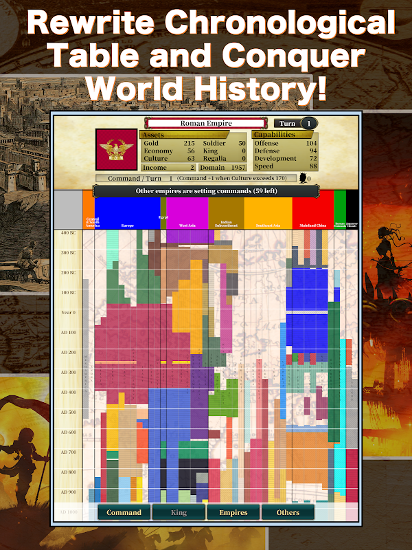 ¡Gana batallas históricas y la guerra mundial, y derrota y enfréntate a otras naciones, estados, clanes y civilizaciones con tu ejército para convertirte en el único y máximo gobernante de la historia de la humanidad!
