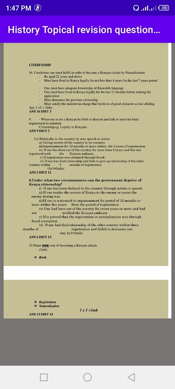 Esta aplicación presenta preguntas y respuestas de revisión de temas de historia y gobierno