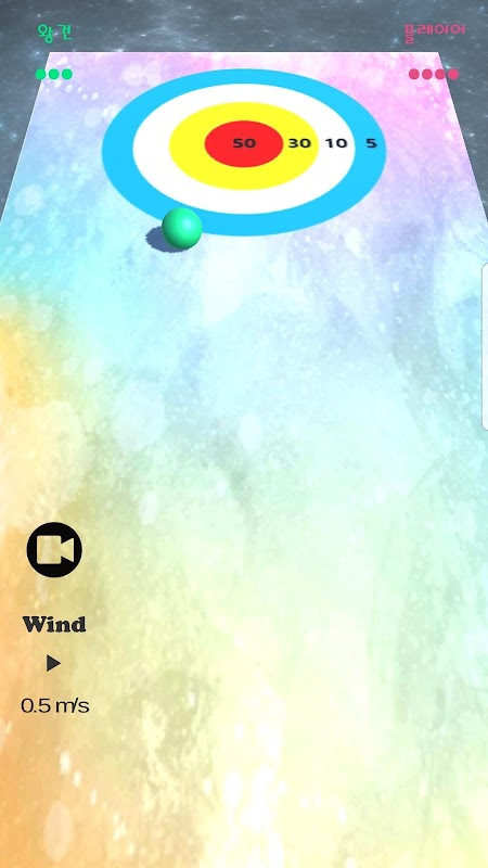 컬링의 회전 대신 바람의 방향을 고려하여 구슬을 칩니다.