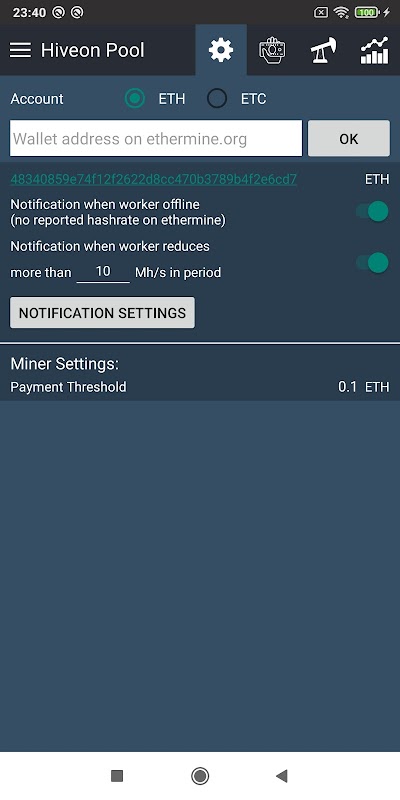 - Verifique su hashrate actual, saldo, trabajadores, pagos, ...