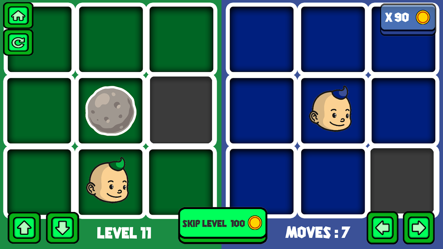 Niveles desafiantes con cuadrículas de 3v3 y 4v4, y la dificultad aumenta a medida que se introducen nuevos obstáculos.