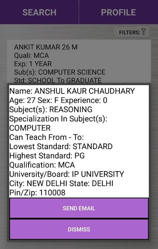 To view a particular profile just enter the email-id of the person in filter section and press Go!