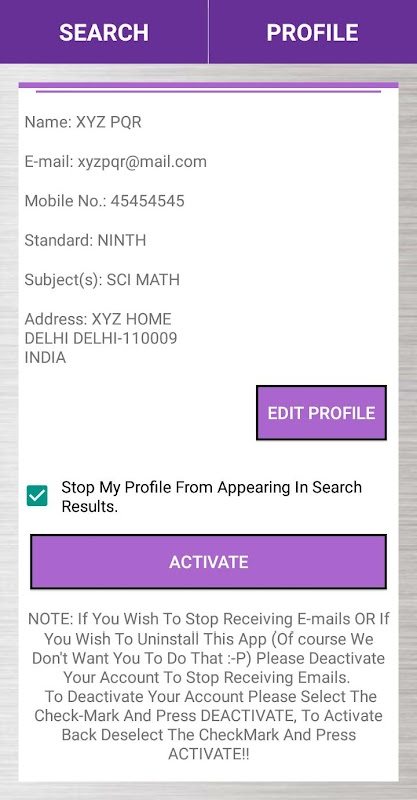 If you got what you wanted on the App and don't want anyone to contact you just deactivate your account in Profile section and your profile will stop showing in search results also if you want to register again in case you uninstalled the App, you can get back to your old profile just by entering your old email-id you registered with and the password which will be sent to you after you register with us for the first time.