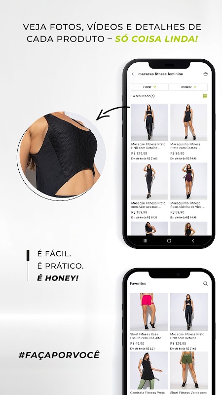 Comprar ropa de fitness en línea es aún más fácil con Honey Be! Descargue ahora y manténgase al tanto de las últimas tendencias en moda femenina con precios al por mayor. ¡Compre en línea desde la comodidad de su hogar y reciba el mejor producto de acondicionamiento físico para mujeres en cualquier lugar de Brasil! Desde los leggings hasta el calzado deportivo Hardcore, encuentra el estilo que más te convenga.