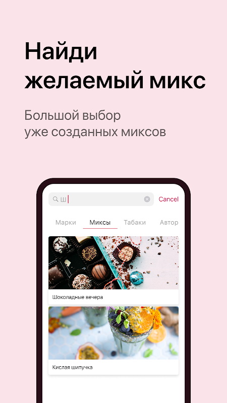 Удобный поиск по вкусу или по имеющемуся у вас табаку.