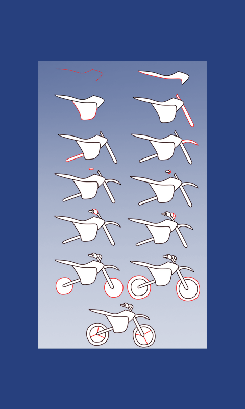 Para ayudarlo a encontrar conceptos, formas u otros elementos relacionados con esta aplicación, le brindamos una aplicación sencilla en forma de cómo dibujar una bicicleta.