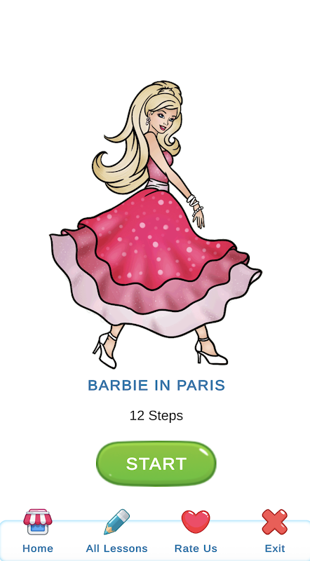 2. Interfaz sencilla y clara. Hemos tenido en cuenta todas las necesidades de los principiantes y hemos creado una interfaz cómoda e intuitiva de la aplicación, que le permitirá aprender fácilmente cómo dibujar muñecas Barbie.