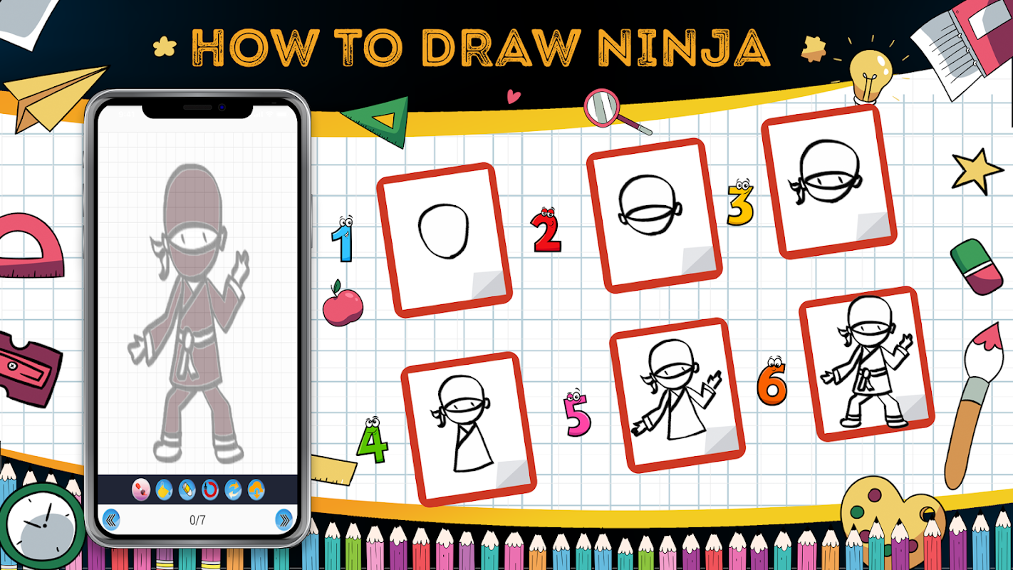 Learn How to Draw Ninja es la aplicación más efectiva para todos los que quieran dibujar bocetos ninja fácilmente y es completamente gratis. La aplicación Cómo dibujar Ninja en papel es una actividad divertida, incluye una gran colección de ninjas y es la mejor aplicación de autoaprendizaje para usted y su familia.