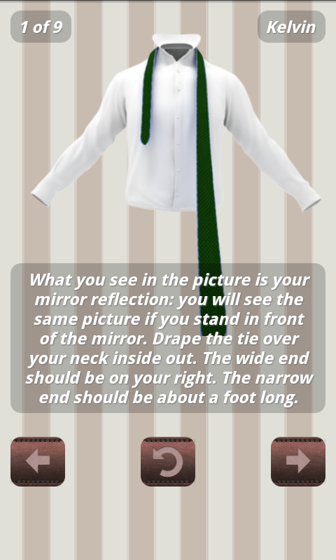 El nudo adecuado en su lazo, muy bien y correctamente atado - es que un problema para usted? El "Cómo atar un lazo - Animación 3D" aplicación va a convertir este problema en un placer. Hay un nudo de corbata para cualquier ocasión y para todos los gustos: ancho o estrecho, grande o pequeño, simétrico o asimétrico, corbata o pajarita. Las descripciones de los nudos le dirá todo acerca de su forma, tamaño, virtudes e inconvenientes. Las 3D de animación de instrucciones paso a paso son maravillosamente fácil de seguir: usted no tiene que romperse la cabeza sobre los símbolos especiales y regímenes con flechas - las instrucciones están animados! Sólo ver la animación y copiar todos sus movimientos. Usted puede repetir la animación de cada paso para asegurarse de que usted ha hecho ningún error, y consejos cortos de texto será útil si algo todavía permanece poco clara. Repuesto de su tiempo y los nervios! 12 nudos esenciales de unión estarán siempre a mano en tu dispositivo móvil, y usted bien en cualquier situación.