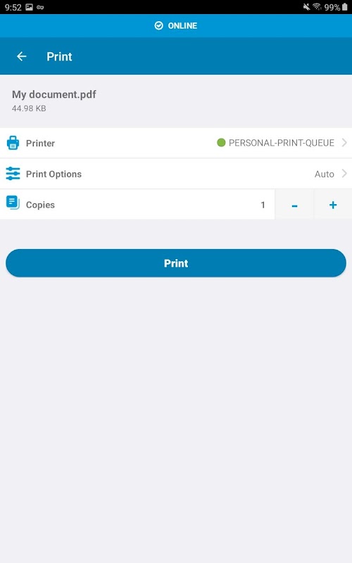 Imprima rápidamente en una impresora a través de HP Mobile Connector.