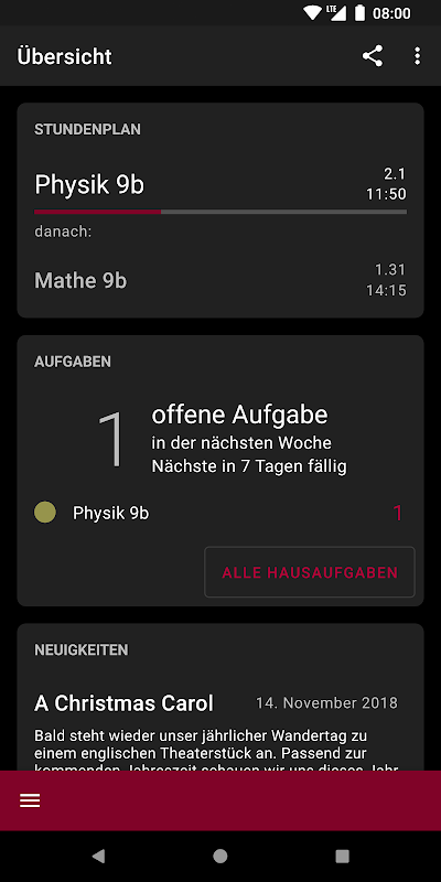 ✔ den aktuellen Stundenplan ansehen