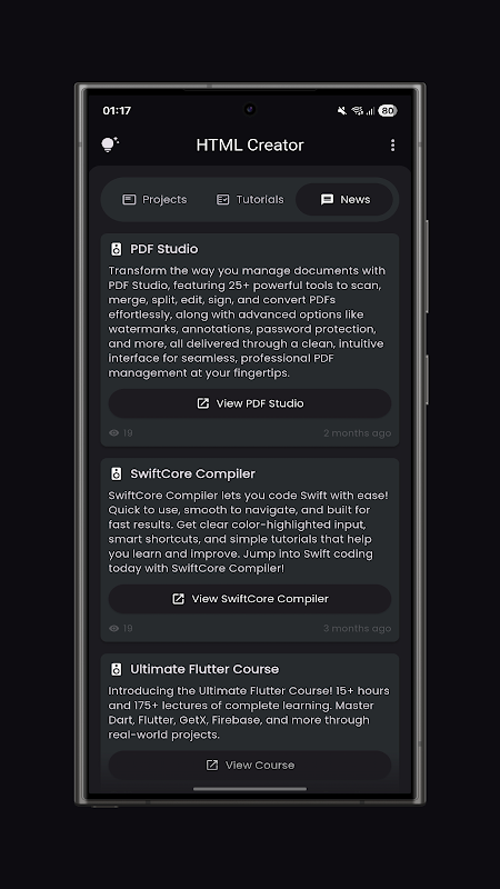 Mejore su experiencia de codificación con la aplicación HTML Creator, donde cada característica está diseñada para satisfacer sus necesidades de desarrollo. Ya sea que esté escribiendo su primera línea de código o depurando proyectos complejos, la aplicación es su compañera de codificación perfecta.