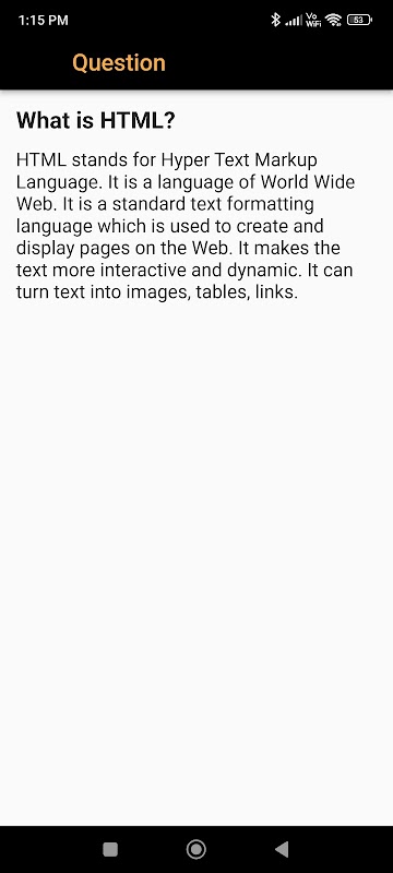 "Preguntas de la entrevista HTML" es una aplicación móvil rica en funciones diseñada para ayudar a los estudiantes, buscadores de empleo y profesionales a prepararse para entrevistas con un enfoque en HTML. Con una extensa colección de más de 150 preguntas, esta aplicación cubre un amplio espectro de temas relacionados con HTML para ayudar a los usuarios a mejorar su conocimiento y aumentar su confianza durante las entrevistas.