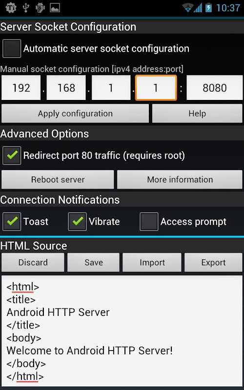 Esta aplicación permite que el teléfono aloje un servidor web