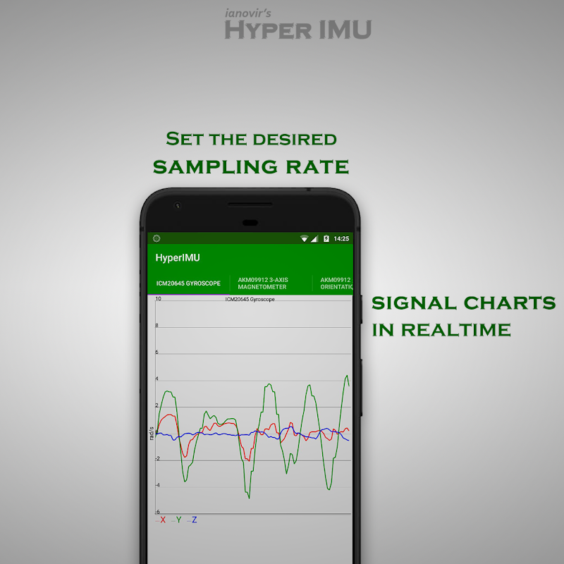 Con HyperIMU también puede ver los gráficos de señales en tiempo de ejecución.