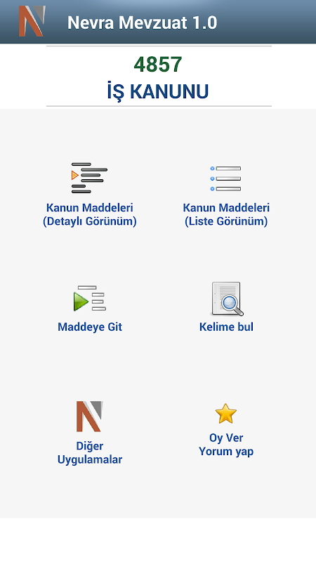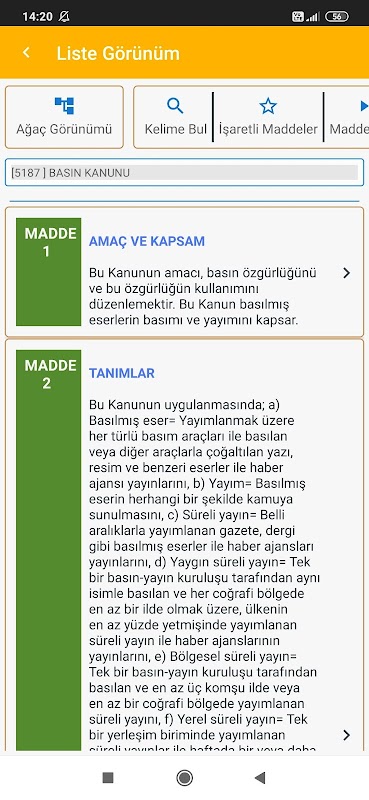 Los artículos de derecho laboral se incluyen en la aplicación como Lista y Vista detallada.
