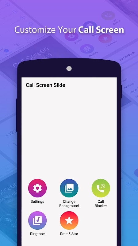 With callscreen theme slide you get incredible and best calling interface same like OS9 and Phone 7. If you don't like default or stock call screen this app is perfect for you and really love it.