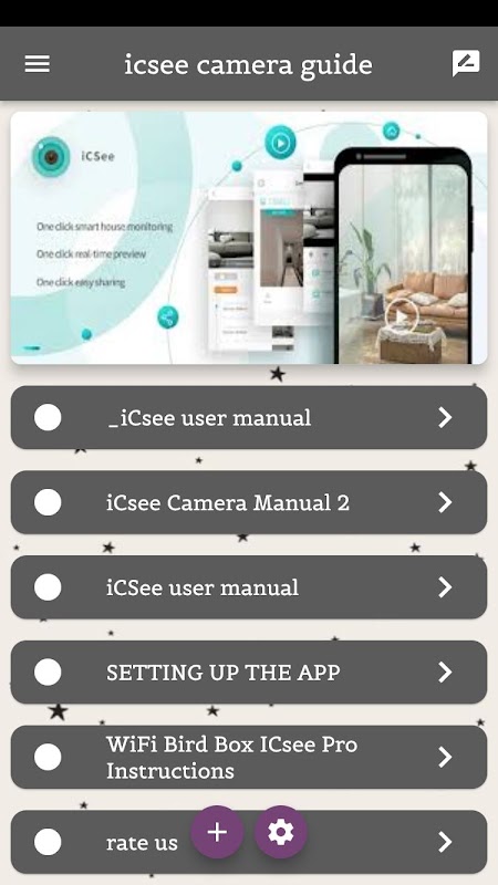 Contenido de la aplicación de guía de cámara icsee: -
