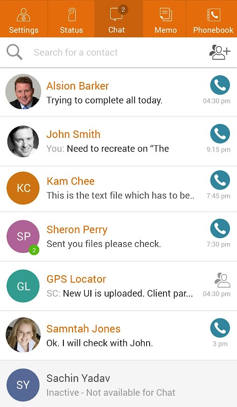 Chat para ideas Innovaciones y todas sus entidades relacionadas. One to One Chat, Chat grupal, Uso compartido de archivos, Transmisión de mensajes, Integración de Google Maps, Directorio de empleados, etc.