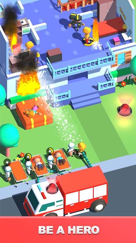 Bombero es un juego inactivo fácil de jugar en el que puedes ser un héroe. En este juego, actuarás como capitán de un grupo de bomberos, tu deber es liderar a tu equipo para salvar vidas en misiones de rescate. Tu misión es dirigir tu equipo de bomberos para salvar a personas, mascotas y sus pertenencias de la casa en llamas.