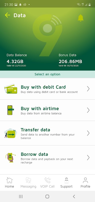 • Data Services: buy, send/transfer, borrow, check balance/usage