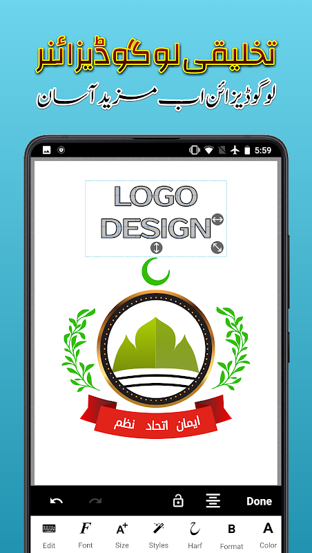 - Logo Maker: diseñe logotipos comerciales con plantillas de logotipos en urdu listas para usar.